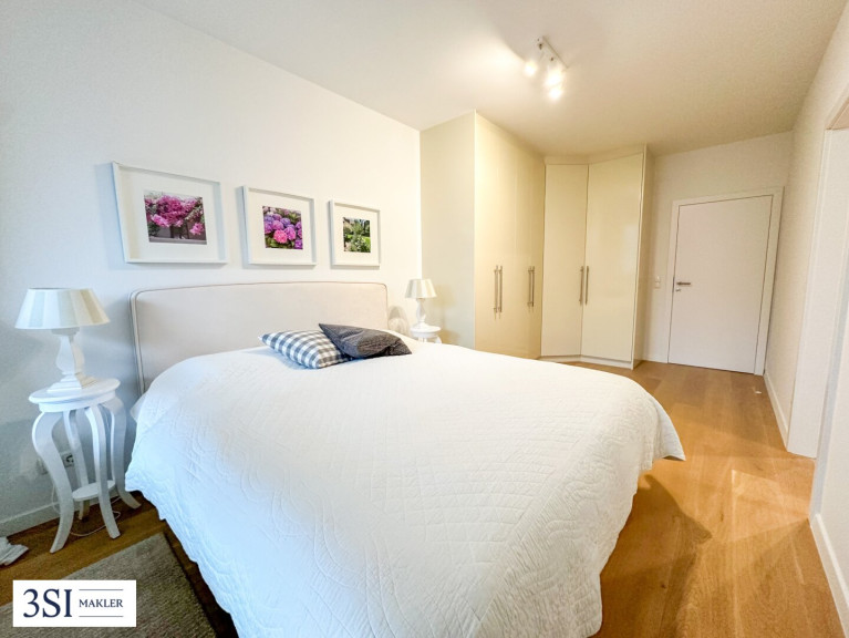 Das freundliche Schlafzimmer verfügt über ein angrenzendes Badezimmer mit Badewanne. Ein separates WC sowie ein praktischer Abstellraum runden das stimmige Raumkonzept ab und schaffen ein angenehmes, modernes Wohnambiente.