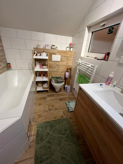 - im Erdgeschoß: Vorzimmer, WC, Badezimmer mit Dusche, Wohnküche, adrettes Wohn-Esszimmer