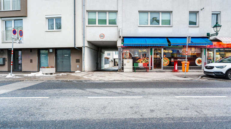Über den gemeinschaftlich genutzten Parkplatz, auf dem Anwohner je nach Verfügbarkeit parken können, erreicht man das Stiegenhaus, von dem aus die Wohnung im zweiten Stock zugänglich ist. Der Eingangsbereich bietet Platz für eine Garderobe sowie einen zusätzlichen Abstellraum, der ebenfalls sehr viel Stauraum bietet.