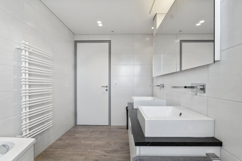 Hochwertiger Parkettboden und moderne Fliesen