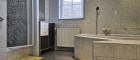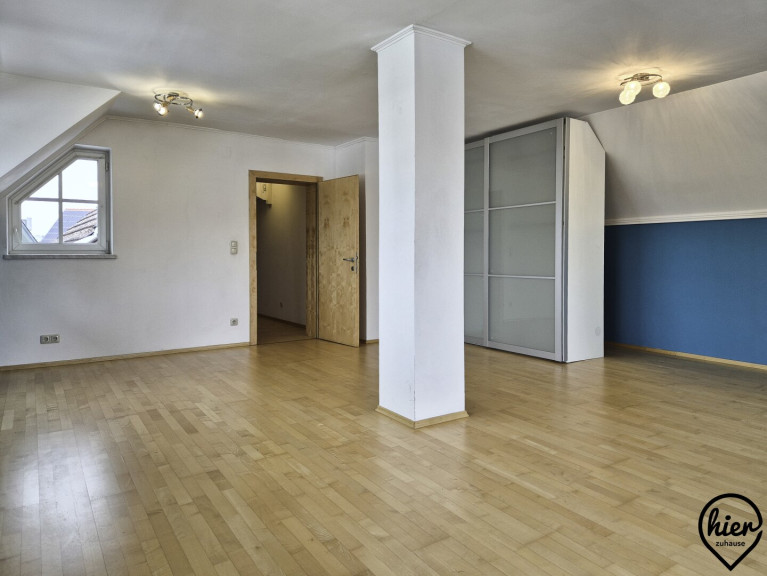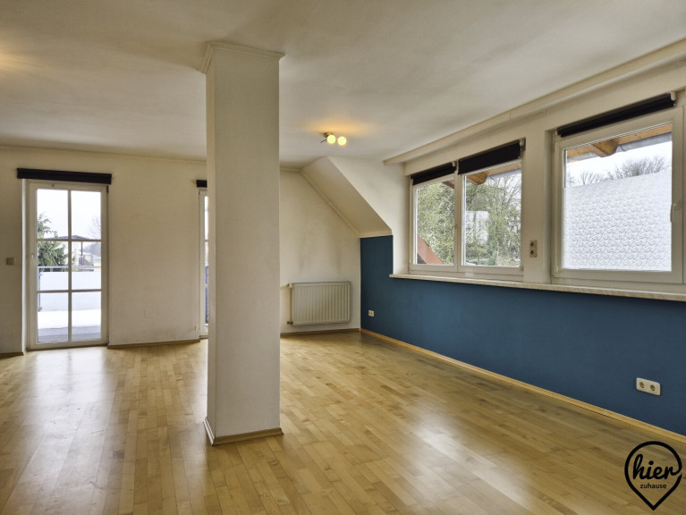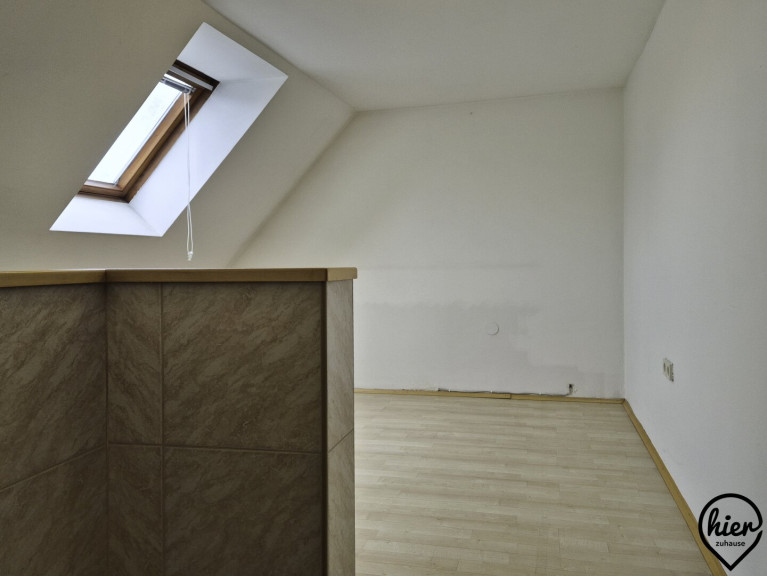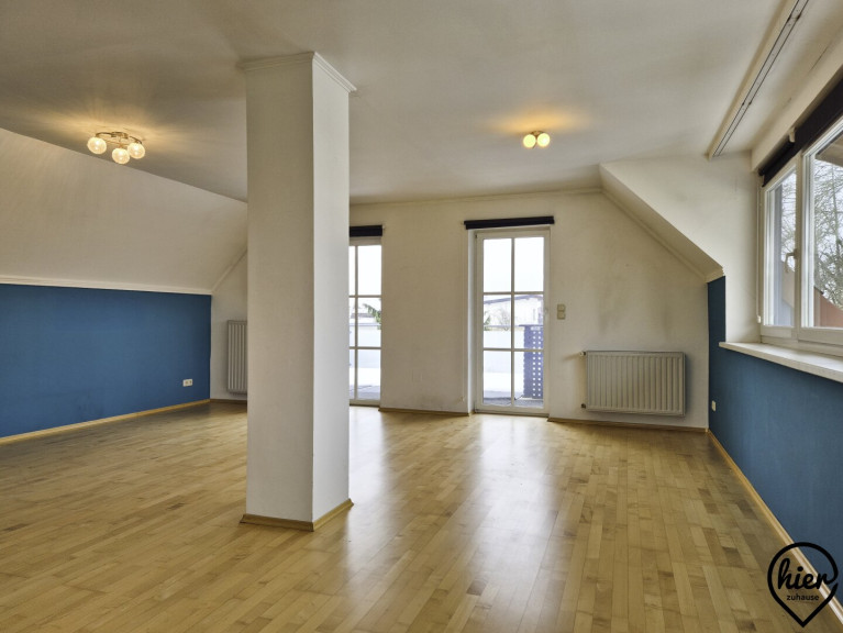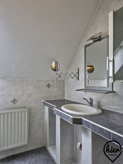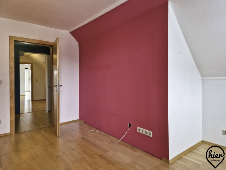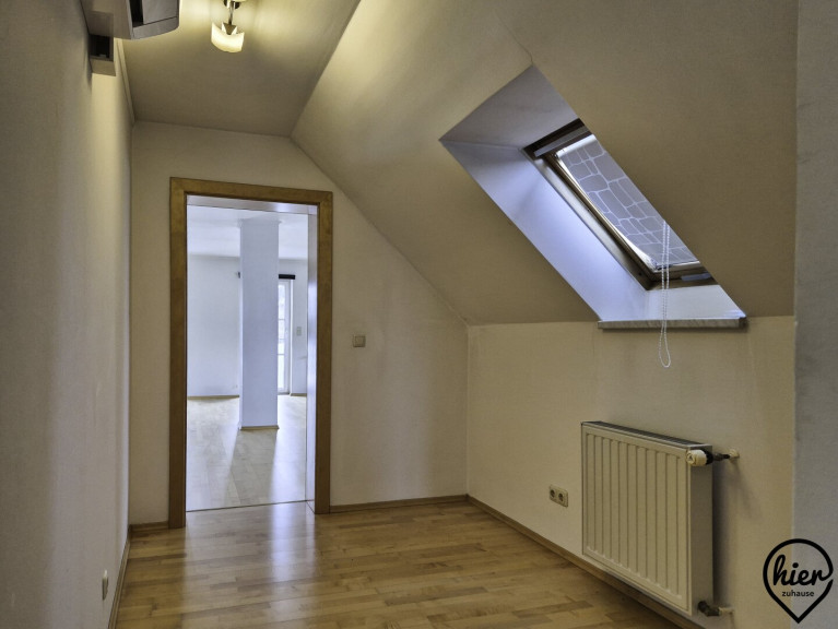 Im Obergeschoss befinden sich ein Zimmer mit kleiner Terrasse, ein kleines Zimmer das als Büro oder begehbarer Kleiderschrank genutzt werden könnte, ein Bad mit Dusche und WC und ein sehr großer Raum mit großer Terrasse.