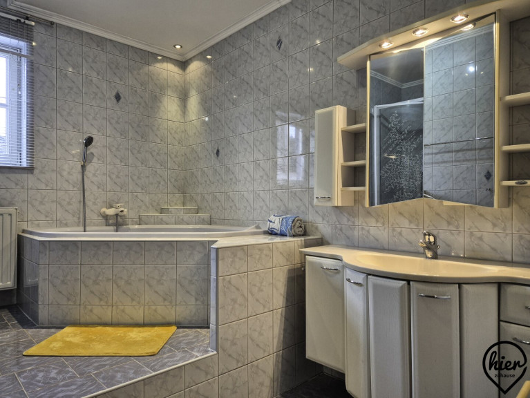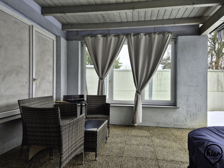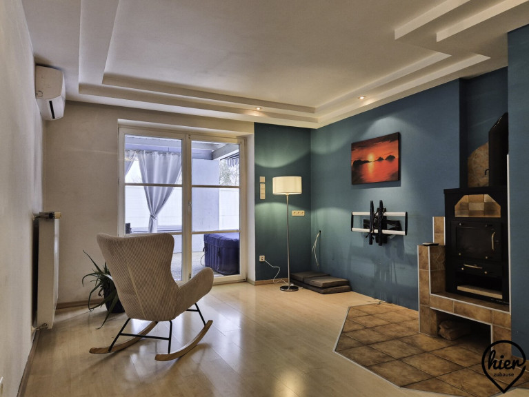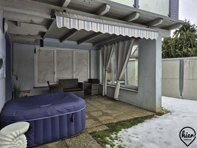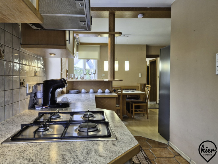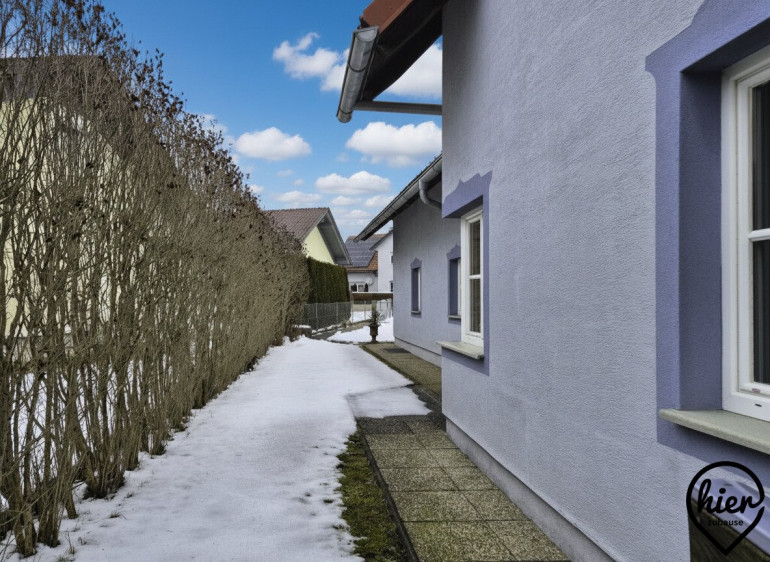 Das Haus überzeugt durch helle Wohnräume und ein angenehmes Wohnambiente. Im Erdgeschoss befinden sich dem Vorraum angeschlossen die möblierte Küche, das Wohnzimmer mit Zugang zur überdachten Terrasse, ein Abstellraum, das WC, das Bad mit Wanne und Dusche. Vom Vorraum gelangt man zudem in den Keller, in die Garage und in das Obergeschoss.