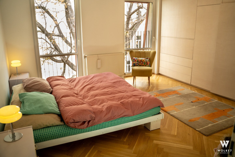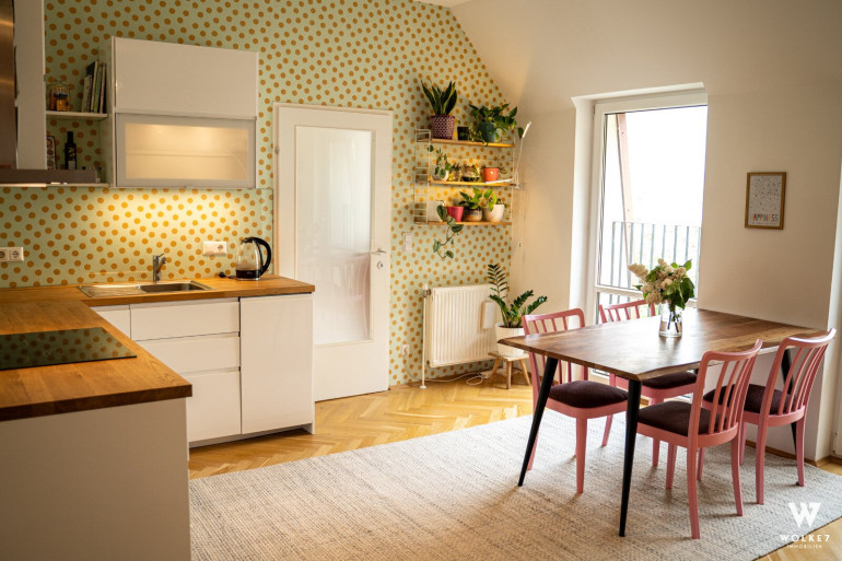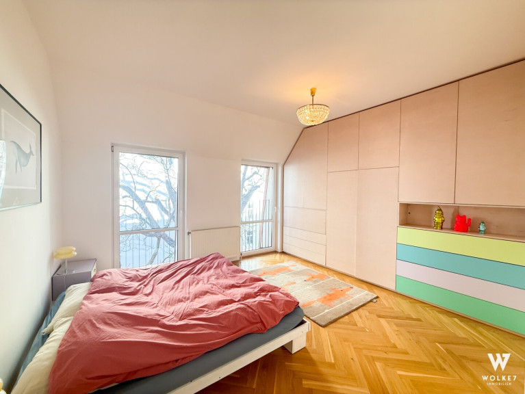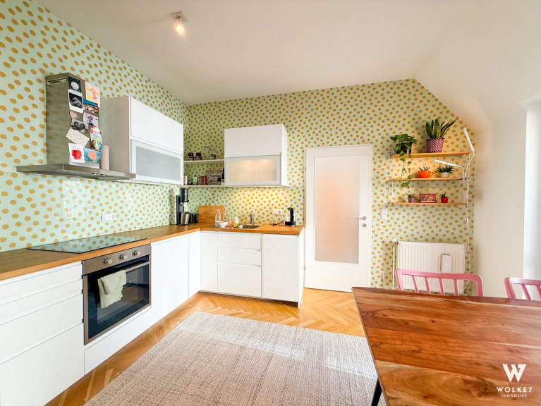 Diese außergewöhnliche Dachgeschoßwohnung vereint Großzügigkeit, Licht und absolute Ruhelage – mitten im begehrten 7. Wiener Gemeindebezirk.