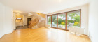 Großzügiges Wohnzimmer (ca. 44m2) mit moderner, offener Einbauküche und Zugang zum Eigengarten (200m2)