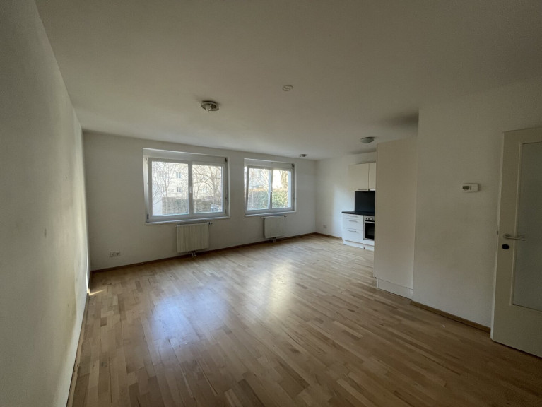 Die verkehrsgünstig gelegene Etagenwohnung bietet einen großzügigen Wohn-Essbereich, Einbauküche inkl. Geräte, Badezimmer mit Dusche, Vorraum und Toilette.