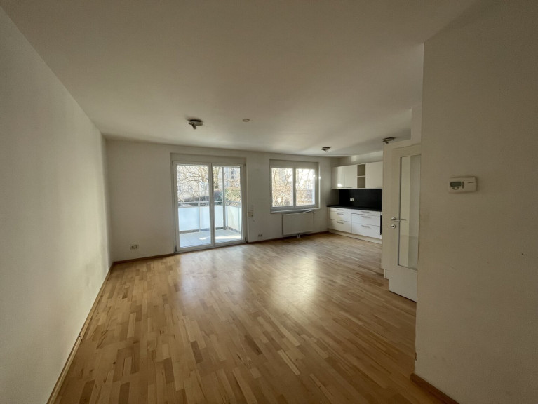 Die verkehrsgünstig gelegene Etagenwohnung bietet einen großzügigen Wohn-Essbereich mit direktem Zugang zum Balkon, Einbauküche inkl. Geräte, zwei Schlafzimmern, Balkon, Badezimmer mit Badewanne, Vorraum und Toilette.
