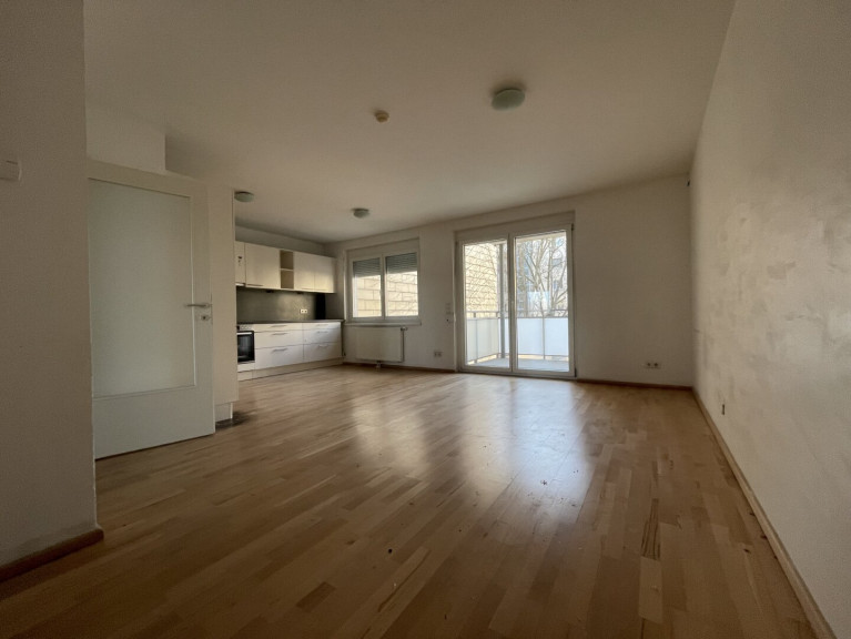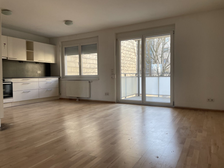 Die verkehrsgünstig gelegene Etagenwohnung bietet einen großzügigen Wohn-Essbereich mit direktem Zugang zum Balkon, Einbauküche inkl. Geräte, zwei Schlafzimmern, Balkon, Badezimmer mit Badewanne, Vorraum und Toilette.