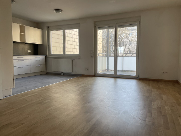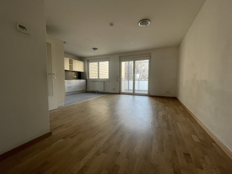 Die verkehrsgünstig gelegene Etagenwohnung bietet einen großzügigen Wohn-Essbereich mit direktem Zugang zum Balkon, Einbauküche inkl. Geräte, zwei Schlafzimmern, Balkon, Badezimmer mit Badewanne, Vorraum und Toilette.