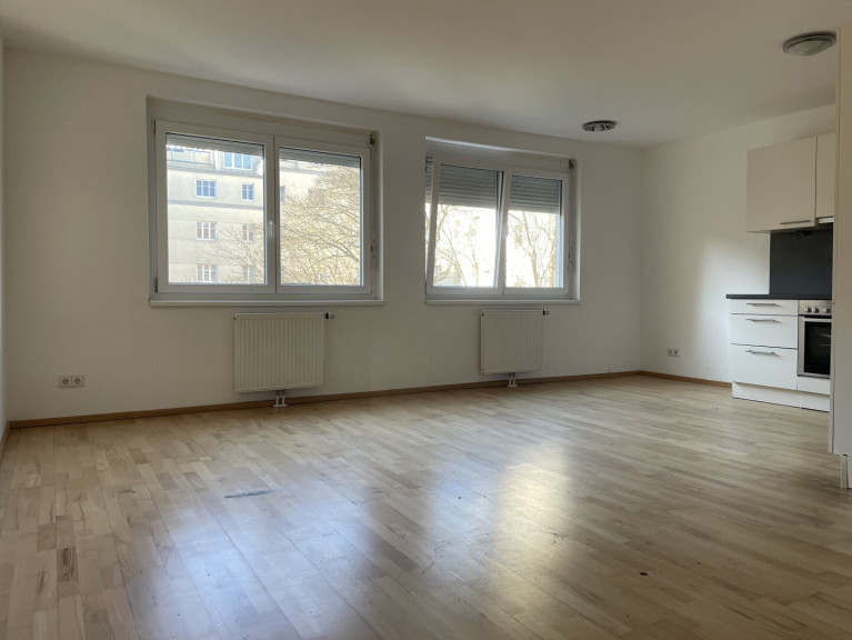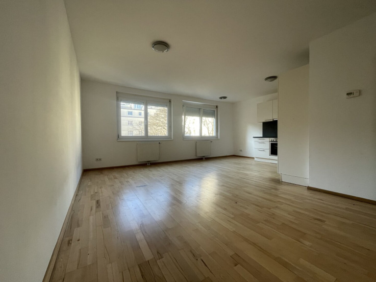 Die verkehrsgünstig gelegene Etagenwohnung bietet einen großzügigen Wohn-Essbereich, Einbauküche inkl. Geräte, Badezimmer mit Dusche, Vorraum und Toilette.