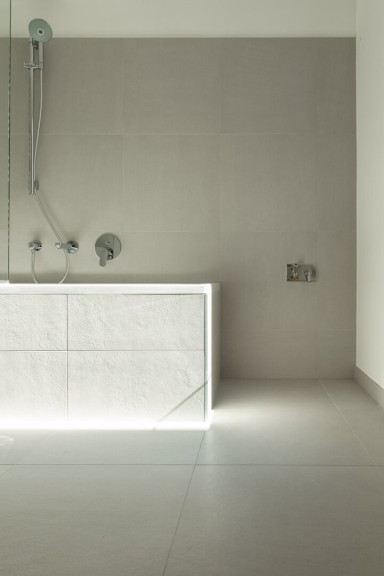 Edler Eichenparkett & großformatige Premium-Fliesen