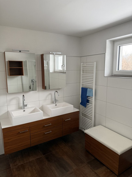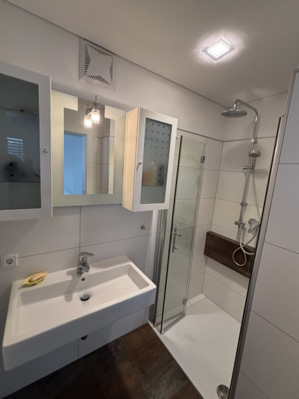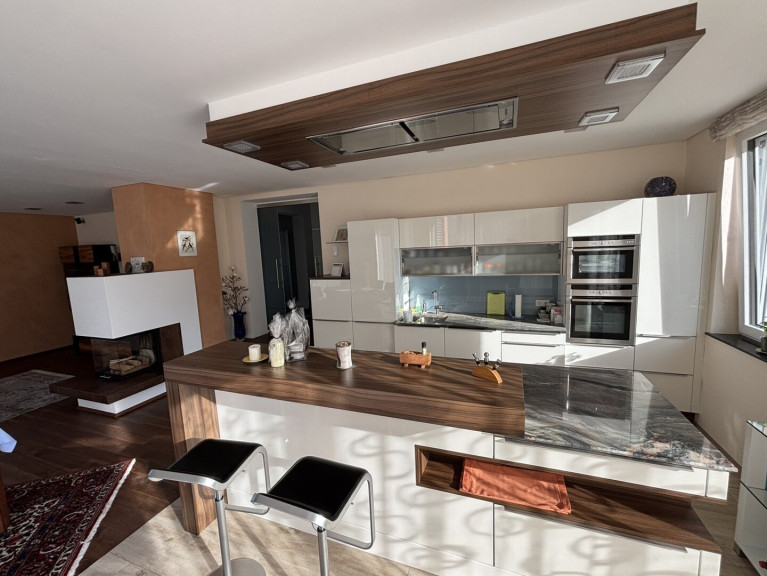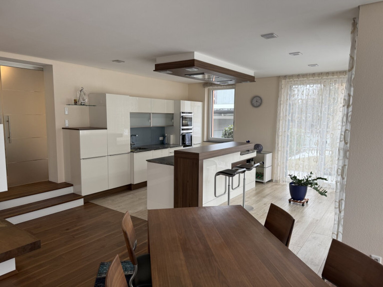 Zwei modern gestaltete Badezimmer bietet Komfort auf hohem Niveau. Die maßgefertigte Einbauküche überzeugt mit Funktionalität und Design und wird schnell zum zentralen Treffpunkt für Familie und Freunde. Zwei Balkone sowie eine Terrasse im Obergeschoss laden dazu ein, den Tag mit den ersten Sonnenstrahlen zu beginnen und entspannte Stunden im Freien zu genießen.