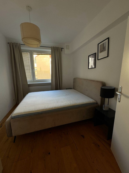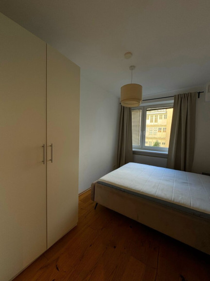 The apartment offers a living space of approximately 52 square meters and features a very well designed and functional layout. Two equally sized bedrooms make the apartment ideal for couples as well as for a two person shared apartment. The central living area is designed as a comfortable open plan kitchen and living space, providing ample room for both living and dining. The layout is completed by a bathroom and a separate toilet. The apartment has been completely renovated and is rented fully furnished.