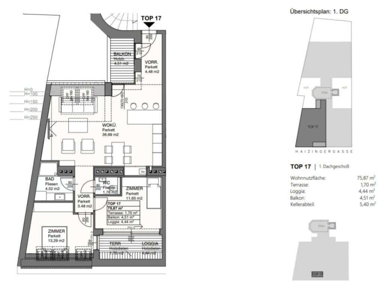 Top 17 1.DG (Loggia + Balkon + Terrasse) ca. 76 m² ca. 5,4 m² ca. 4,5m² EUR 650.000,00 incl. Garagenplatz