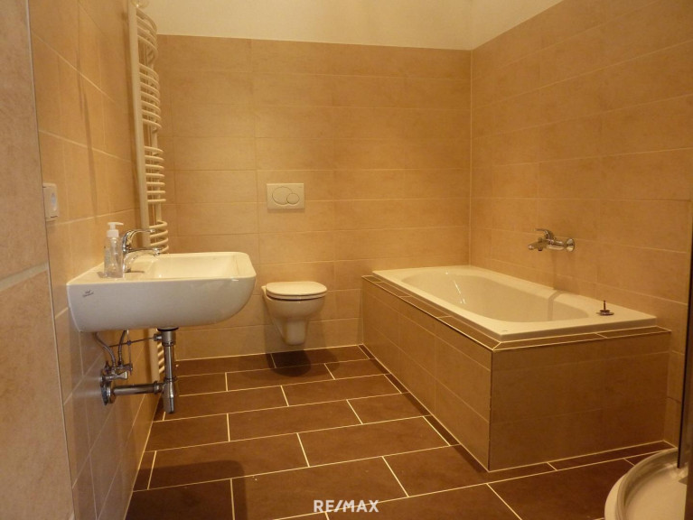 • Badezimmer mit Fußbodenheizung, Wanne, Dusche und WC