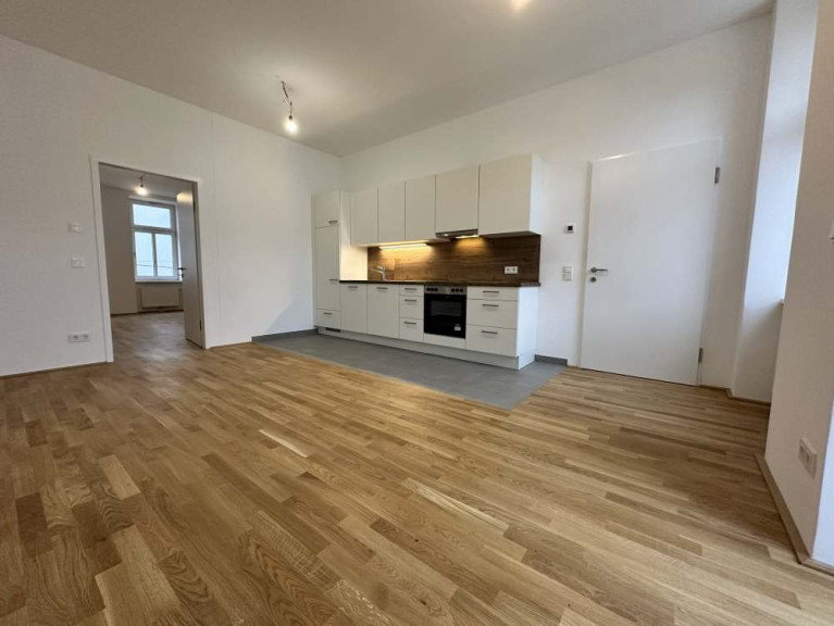Die Wohnung ist mit einer attraktiven, funktionellen sowie hochwertigen Küche inklusive sämtlichen elektrischen Geräten des täglichen Bedarfs ausgestattet. Die Bodenbeläge der Wohnräume verfügen über einen schönen und langlebigen Echtholzparkettboden aus Eiche. Die Bodenbeläge im Badezimmer bzw. WC sind mit Fliesen versehen, welche nicht nur zeitlos und gleichzeitig sehr modern anmuten, sie sind zudem auch äußerst pflegeleicht.