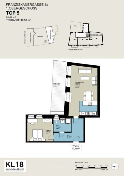 Die Wohnung Top 5 mit ca. 70,68 m² liegt im 1. Obergeschoß – ein Lift ist selbstverständlich vorhanden – und verfügt über folgendes Raumprogramm: