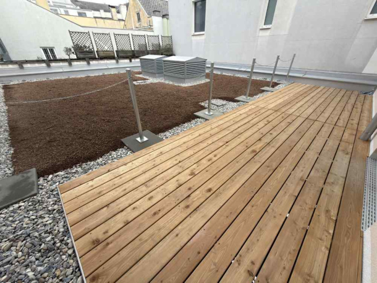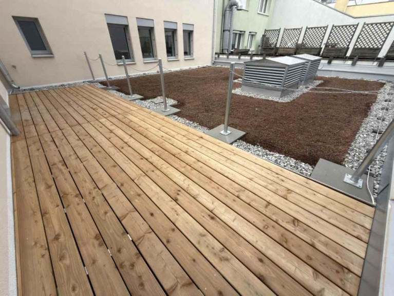 Das im Innenhof befindliche Gebäude bietet neben einer äußerst attraktiven und durchdachten Wohnraumplanung mit hochwertigen Ausstattungen zudem auch eine Garage im Erdgeschoß und im 1. Untergeschoß sowie Kfz-Stellplätze im Freien. Zudem stehen Fahrradabstellplätze im Erdgeschoß sowie auch im Kellerbereich des Gebäudes ebenfalls zur Verfügung.