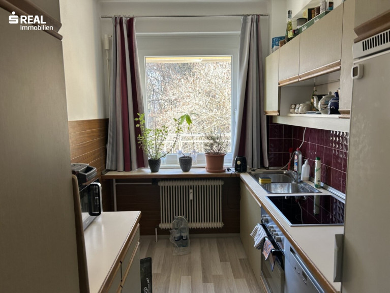 Die Wohnung selbst ist perfekt aufgeteilt und teilweise saniert, mit großem Balkon und ideal als Single- oder Pärchenwohnung geeignet.