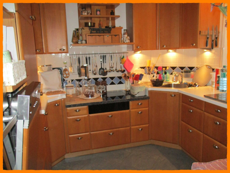 EG: großer Eingangsbereich, offenes Wohnzimmer mit Einbauküche, alle Geräte von Miele wie Induktionsfeld, Backrohr mit Dampfgarerkombination, Granit-Arbeitsplatte. Ausgang auf die Terrasse und in den liebevoll angelegten großen Garten mit Solar- beheizbarem Pool.