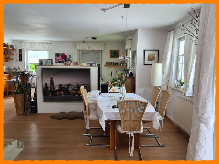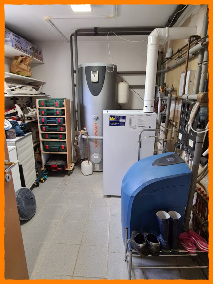 Die Innenräume siind geschmackvoll mit hochwertigen Fliesen von Villeroy & Boch, Echtholzböden, Steinböden und Vollholztüren ausgestattet. Die moderne Heiztechnik mit Gas-Etagenheizung (neuwertiger Brennwertkessel, Marke Vaillant), Fußbodenheizungund ein Specksteinofen sorgen für wohlige Wärme in der kalten Jahreszeit.