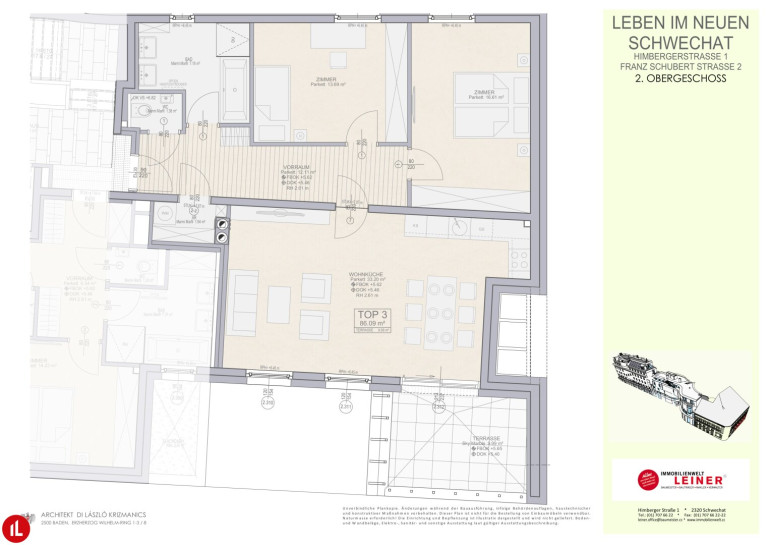 Nach außen ein klarer und moderner Stil, der in Schwechat seines Gleichen sucht und dabei Verlässlichkeit, Vertrauen und Sicherheit ausstrahlt. Im Inneren ein sehr elegantes Zusammenspiel aus hochwertigen Materialien, kurzen Wegen und einer einzigartigen Exklusivität mir nur 8 Parteien im Haus. Architektonisch auf höchstem Niveau, bietet das Schubert Haus ein sensationelles Natur-Angebot im urbanen Raum. Weitreichende Grünflächen, diverse Parkanlagen sowie unzählige Freizeiteinrichtungen sorgen für eine entspannte und entschleunigte Zeit. Die notwendigen Nahversorger sind alle zu Fuß erreichbar und sorgen für einen zusätzlich hohen Wohnkomfort. Ein einzigartiges Wohlfühl-Ambiente ist in diesen Räumen garantiert.
