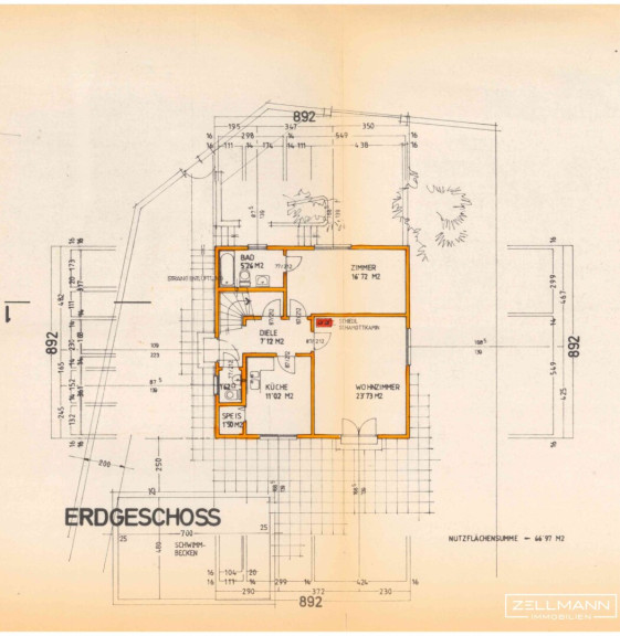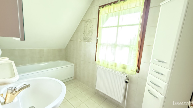 Fliesen, Laminatboden, Öl, Etagenheizung, Kamin, Einbauküche, Südbalkon, Bad mit Fenster, Badewanne, Kabel/Satelliten-TV, Garage, Swimmingpool