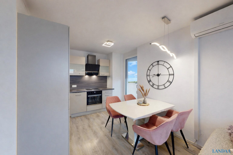 Im Anschluss gelangen Sie in die offene, helle Wohnküche, die sowohl zum Kochen als auch zum gemütlichen Verweilen einlädt – sei es bei einem Glas Wein oder zur Entspannung auf dem Balkon.