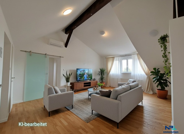 Diese 2022 komplett generalsanierte, großzügige Wohnung befindet sich in einem Wohnhaus mit 2 Wohneinheiten und präsentiert sich in einem modernen und einladenden Stil.
