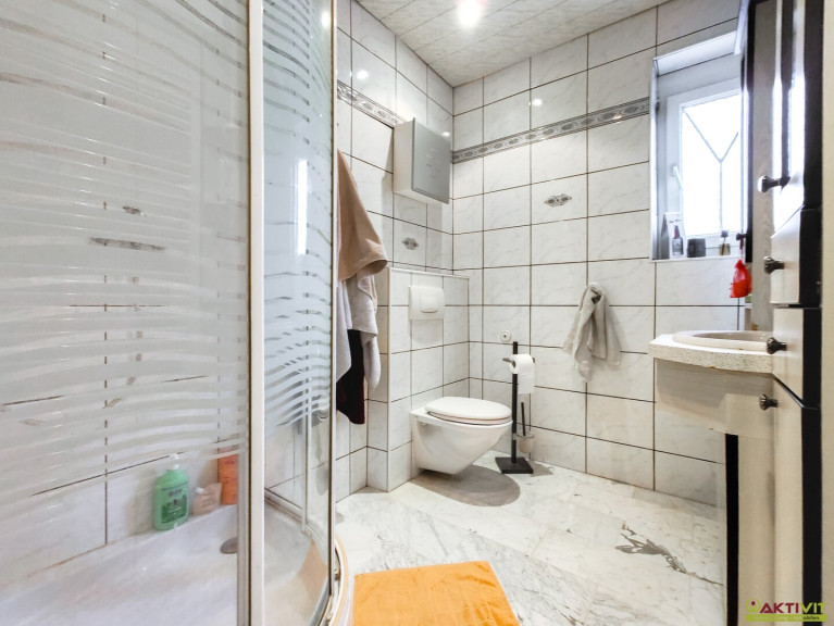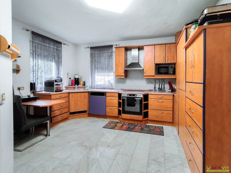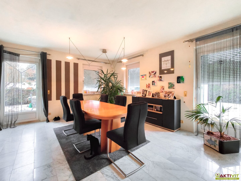 Das Wohnhaus befindet sich in gepflegtem Zustand, kleinere Renovierungsmaßnahmen wie das Streichen der Fassade und Innentüren sowie das Verlegen fehlender Fliesen im Keller sind noch durchzuführen. Die Liegenschaft wurde in Massivbauweise errichtet und verfügt über eine solide Ausstattung. Der Bodenbelag besteht aus Fliesen, Laminat und Marmor.