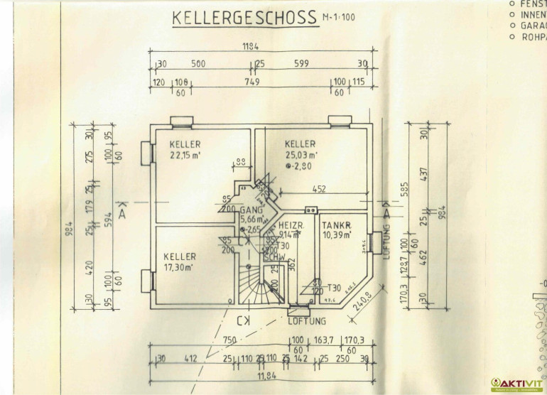 - Keller mit ca. 92 m² inkl. Heizraum, Tankraum und drei weiteren Räumen