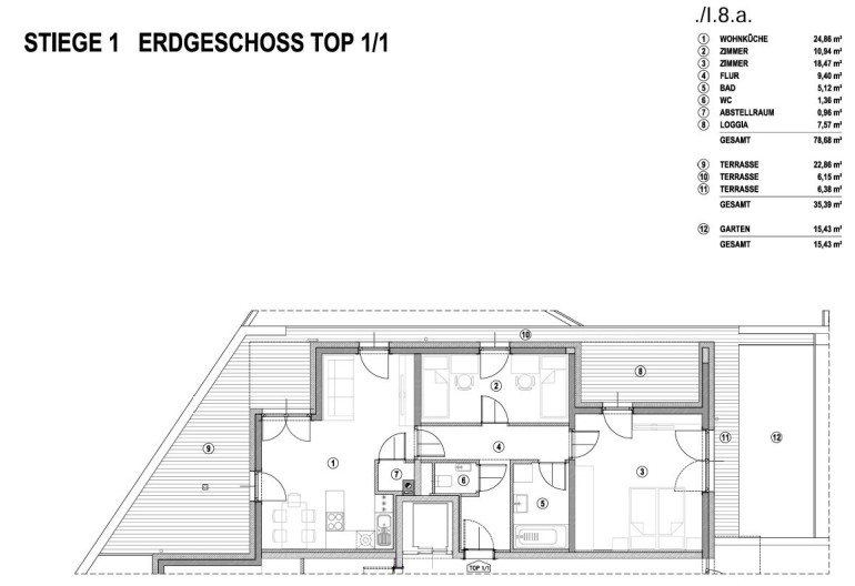 Dieses Inserat bezieht sich auf eine Erdgeschoßwohnung mit 78,68 m² mit 3 Terrassen und kleinem Garten.