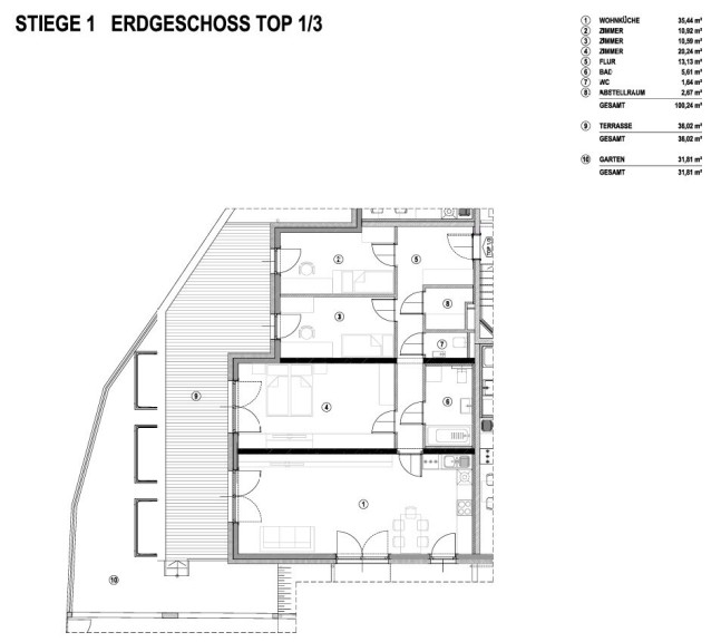 Dieses Inserat bezieht sich auf eine 4 Zimmer Erdgeschoßwohnung mit 100,24 m² mit großer Terrasse und Gartenanteil.