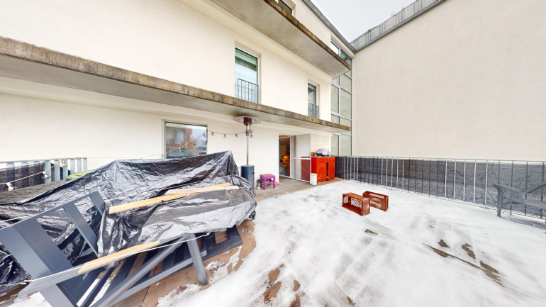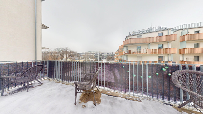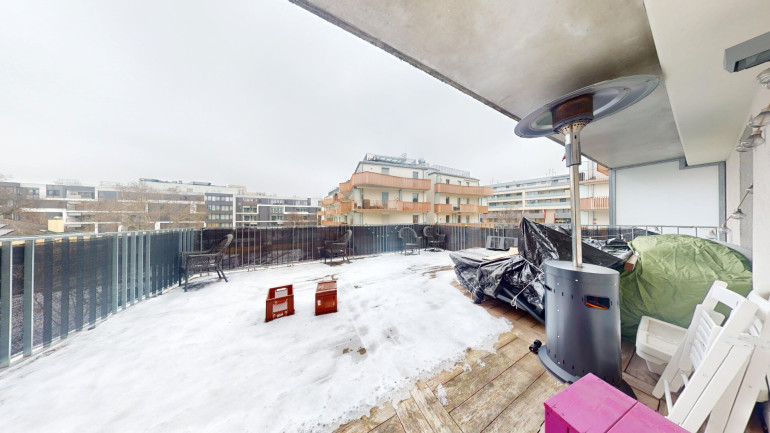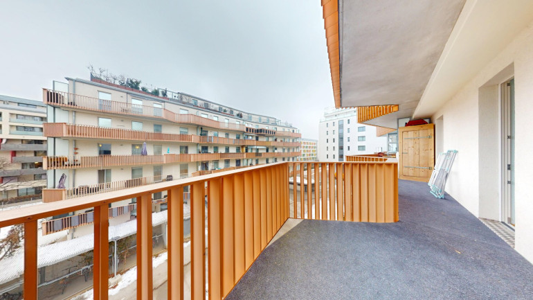 Perfekte Raumnutzung und traumhafte, großzügige Freiflächen - Hier haben Paare und Familien genügend Platz auf effizient genutztem Raum. Der Grundriss ist perfekt. Insgesamt 3 Zimmer, davon 2 Schlafzimmer und ein großes Wohnzimmer mit räumlich abgeteilter offener Küche mit allen elektrischen Geräten, Bad mit Wanne und Waschmaschine, separate Toilette mit Handwaschbecken, praktischer Abstellraum und als Highlight insgesamt 54m2 Freiflächen aufgeteilt auf eine riesige Terrasse, Loggia und Balkon. Alle Räume sind zentral über das Vorzimmer begehbar. Ein Kellerabteil, Fahrrad- sowie Kinderwagen-Abstellraum sind im sehr gepflegten Haus vorhanden.