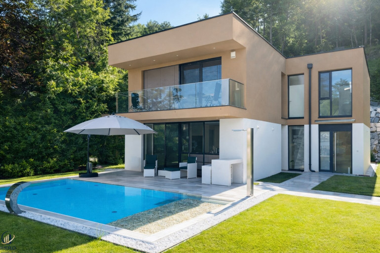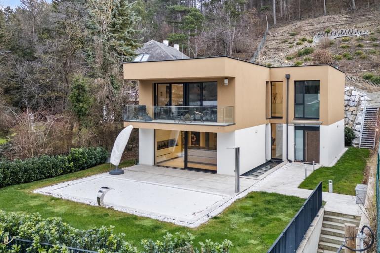 Willkommen in Ihrem neuen Zuhause in Klosterneuburg, einer der exklusivsten Wohnlagen im Wiener Umland. Diese außergewöhnliche Designresidenz steht für moderne Architektur, höchste Bauqualität und ein Wohnerlebnis auf Premium-Niveau. Das architektonisch anspruchsvolle Haus besticht durch seine klaren Linien, die elegante Kubatur und vor allem durch die großzügigen Glasflächen, die Innen- und Außenraum auf harmonische Weise miteinander verbinden. Bodentiefe Fensterfronten durchfluten sämtliche Wohnbereiche mit Tageslicht und schaffen eine offene, helle und zugleich repräsentative Atmosphäre.