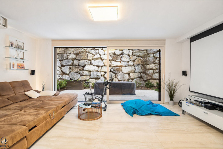 Die rund 460 m² Wohn- und Nutzfläche verteilen sich auf drei Ebenen und bieten ein Höchstmaß an Wohnkomfort, Privatsphäre und Großzügigkeit.