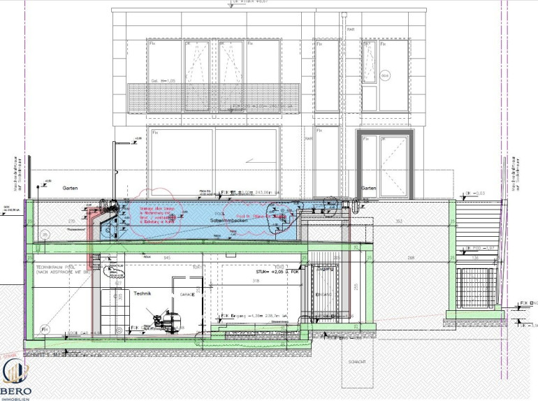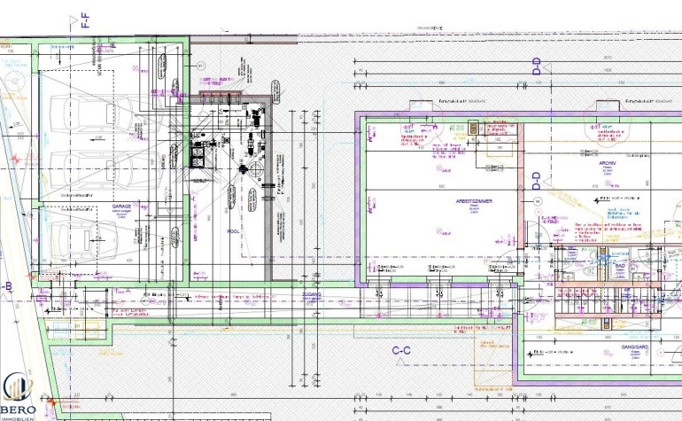 - Garage für bis zu drei Fahrzeuge inkl. begehbarem Pooltechnikraum