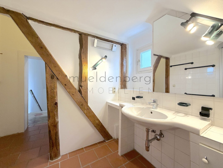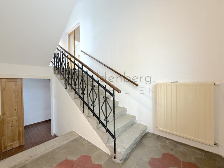 Die Innenräume sind harmonisch gestaltet und bieten eine Kombination aus stilvollen Fliesen, elegantem Parkett und robustem Steinboden. Die Etagenheizung sorgt für wohlige Wärme und ein angenehmes Raumklima, während die beiden modernen Bäder mit Fenster, Badewanne und Dusche höchsten Komfort bieten. Hier können Sie nach einem langen Tag entspannen und neue Energie tanken.