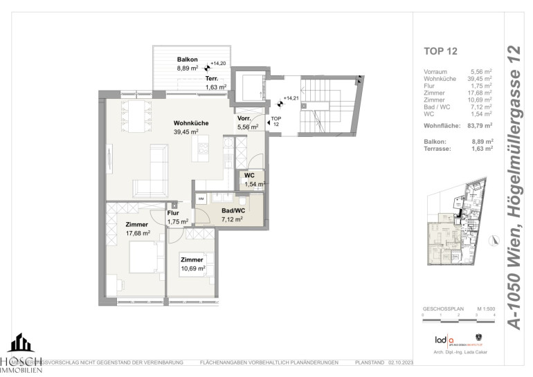 Zur gegenständlichen Wohnung TOP 14 + 14a (Zusammenlegung):