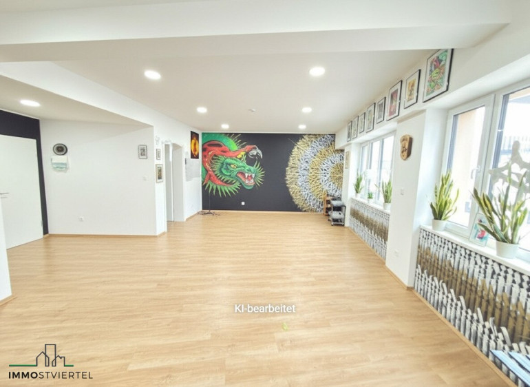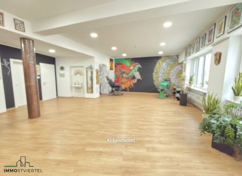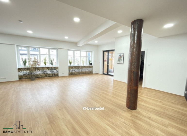 * Raumaufteilung derzeit 1 großes Studio mit 55 m² - Teilung ev. möglich, Teeküche, Vorraum mit anschließenden WC, Büro mit ca. 9 m²