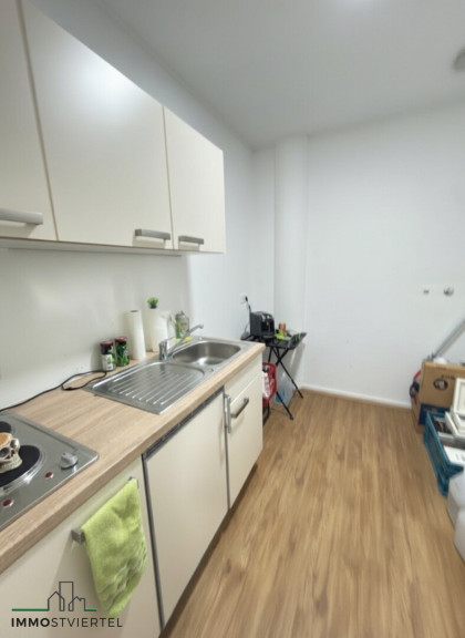 * kleine Einbauküchenzeile vorhanden ( 2 el. Kochplatten und Spüle sowie ein kl. Kühlschrank mit Gefrierfach )