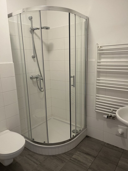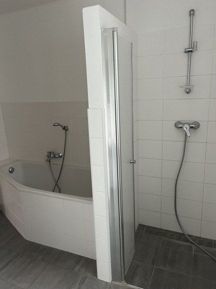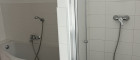 - Moderne Sanitäreinrichtungen: Badezimmer mit Dusche und Badewanne