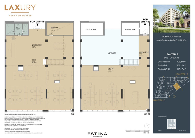Mit seiner Mischung aus Wohnung und Büro nimmt LAXURY den Grundgedanken moderner Stadtentwicklung auf: Vielfalt mit Mehrwert. Im Fokus stehen 80 moderne, klug geschnittene Eigentumswohnungen mit einer Größe von ca. 30 m2 bis ca. 180 m2 mit 1 - 4 Zimmer. Die oberen Stockwerke bieten einen sensationellen Blick über die Stadt.