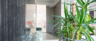 Ebenfalls sehr modern gestaltet ist der Hauseingangsbereich mit einer Komplettverglasung und "Finger-Print-Funktion" bei der Eingangstüre.