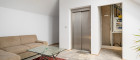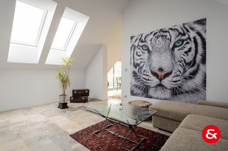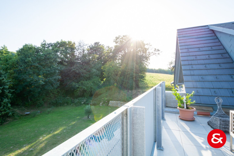 Ein Personenlift (6 Personen, barrierefrei, Fa. Schindler) macht es einfach, vom Keller in das sehr moderne, mit zwei großen Gauben und einer 45 m² großen Terrasse, ausgebaute Dachgeschoß zu gelangen. Der Blick von dieser Terrasse in den Wienerwald bzw. in die Ferne ist einzigartig.