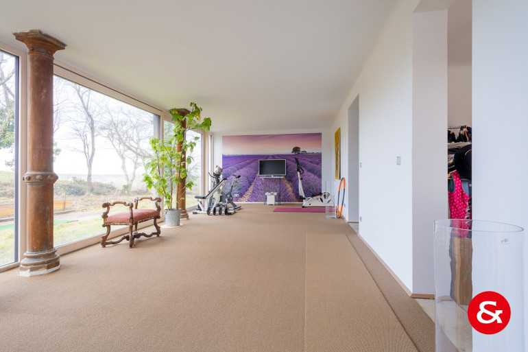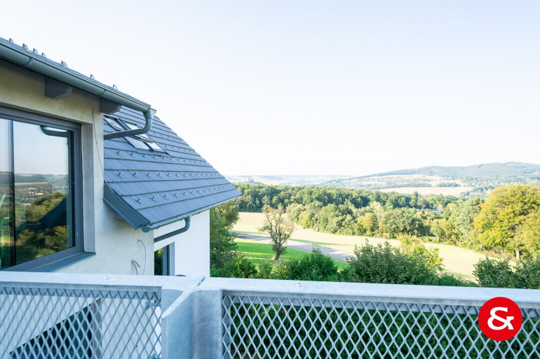Durch den Umstand, dass das größtenteils ebene Grundstück sehr offen und frei am Berghang liegt, haben Sie in jede Himmelsrichtung und aus allen Fenstern auf allen Ebenen einen großartigen Fernblick - teilweise in bewohntes Gebiet wie Maria Anzbach oder Neulengbach, aber auch in großflächige Grünbereiche wie den Wienerwald oder bis ins Tullnerfeld.
