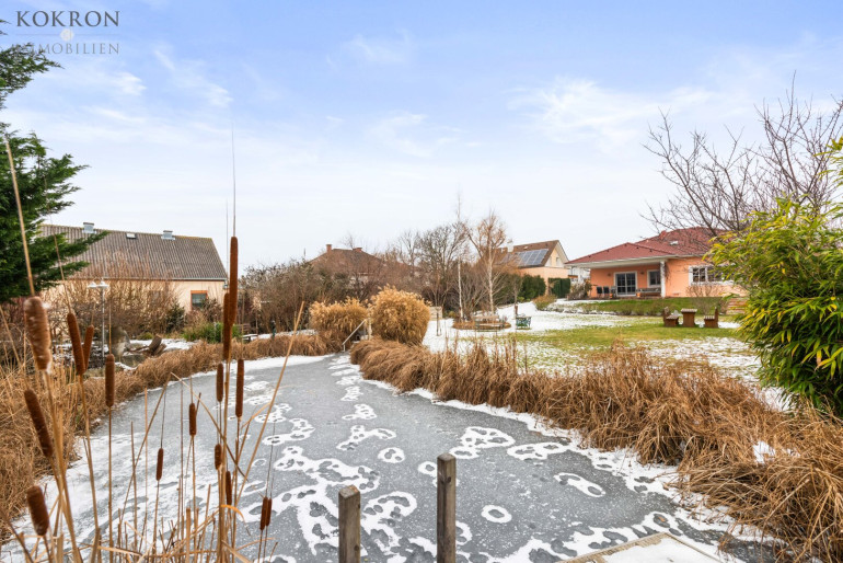 Ein neuwertiger Bungalow mit außergewöhnlichem Garten und Schwimmbiotop, hochwertiger Ausführung und ruhiger Lage nahe Wien. Ideal für anspruchsvolle Käufer, die das Besondere suchen und Wert auf Qualität, Ruhe und zeitlose Architektur legen.