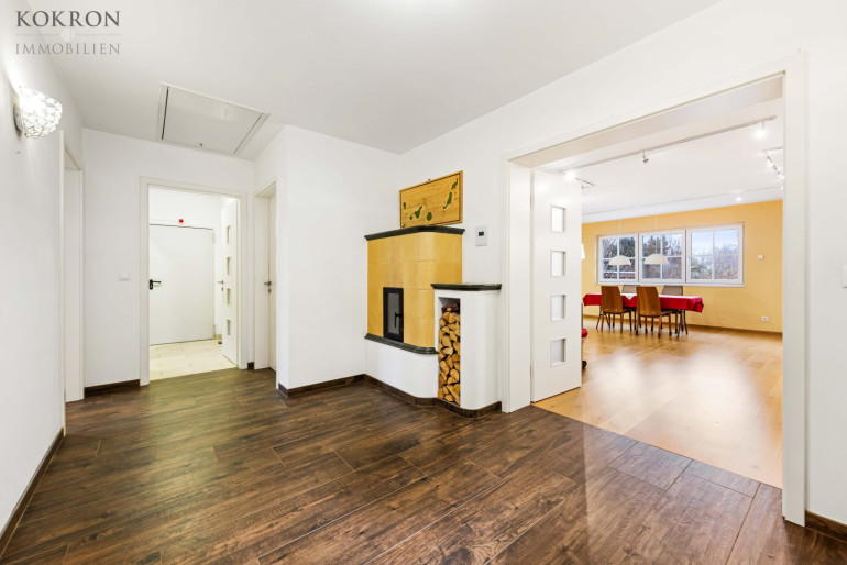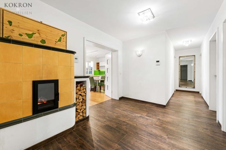 Vom Vorzimmer aus sind alle Räume des Hauses erschlossen. Neben dem großzügigen Wohnzimmer mit kuscheligem vollautomatisch gesteuertem Kachelofen und angeschlossener moderner Küche mit Siemens-Geräten und Dunstabzug finden Sie zwei Sanitärräume, den Wirtschaftsraum und 3 weitere Zimmer. Sowohl vom Wohnzimmer als auch von einem der Schlafzimmer gelangen Sie auf die 26 m² große überdachte Terrasse mit Blick in den herrlichen Garten. Im Garten finden Sie ein weiteres Gartenhaus (ca. 15 m²) mit Zubau (ca. 3 m²).