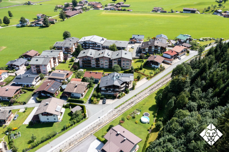 Die Mikrolage ist fantastisch. Direkt in der Nähe hält der Skibus, in Richtung Süden blickt man auf die Berge und Skiwelt des Brixentals. Grundsätzlich ist es eine sehr ruhige und idyllische Lage, von der aus trotzdem alles infrastrukturell Wichtige zügig erreichbar ist.