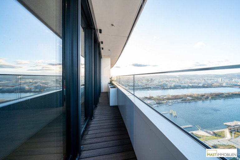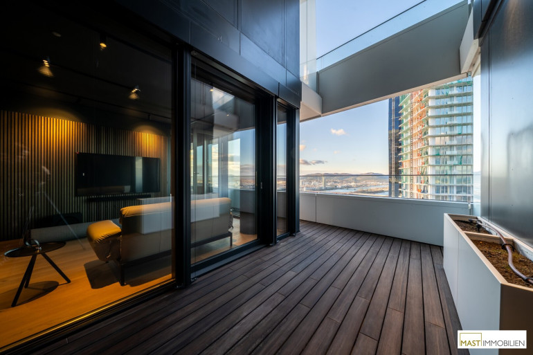 Die Wohnung befindet sich im 40. Liftstock und verfügt über eine Wohnfläche von 66,95 m² + einen 8,85 m² großen Balkon + eine 11,51 m² große Loggia mit Wintergarten.