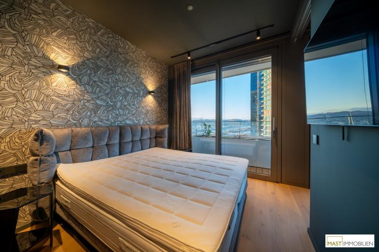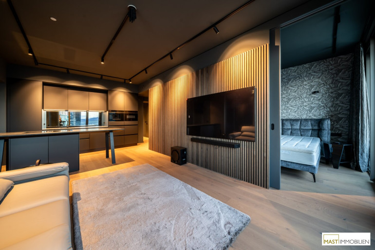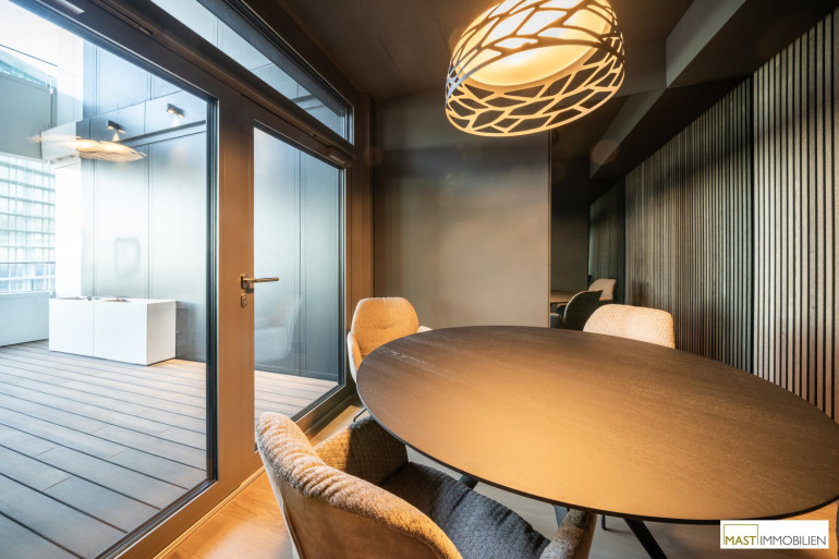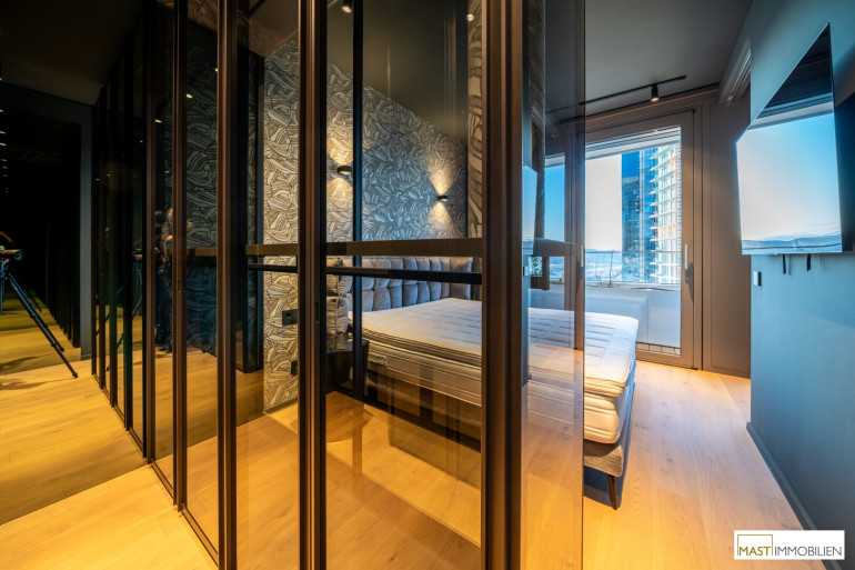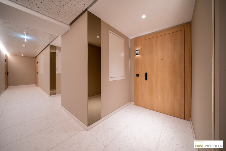 Großzügige, raumhohe Fensterflächen sorgen für lichtdurchflutete Räume und unterstreichen das moderne Wohnkonzept. Die hochwertige, stilvolle Möblierung ermöglicht einen sofortigen Einzug ohne zusätzlichen Aufwand. Das gesamte Gebäude und auch die Wohnung sind modernster Smart-Home-Technologie ausgestattet: Beleuchtung, Beschattung, Heizung und weitere Funktionen lassen sich komfortabel und zentral über ein Tablet steuern und individuell an persönliche Bedürfnisse anpassen.